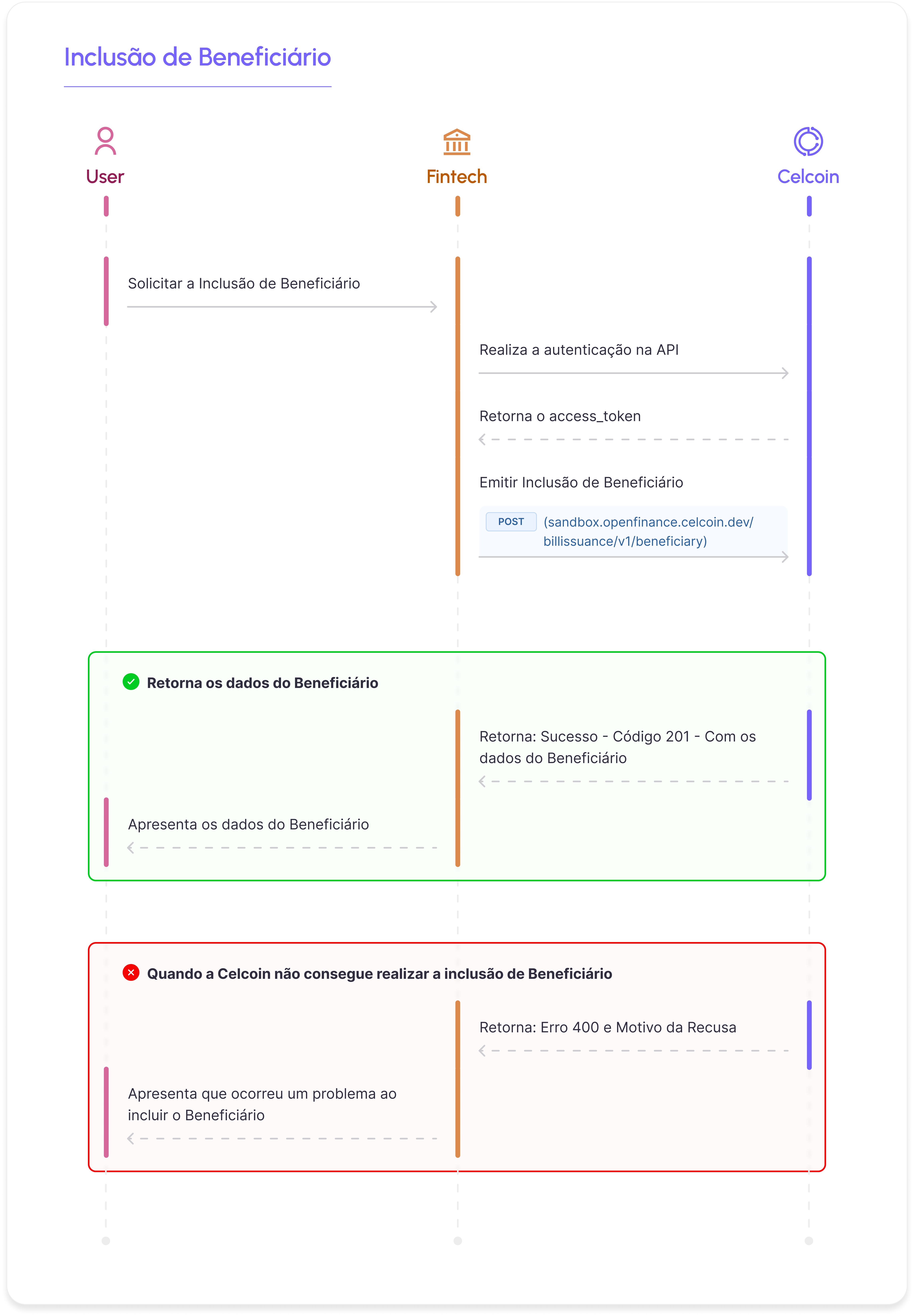 Essa funcionalidade permite que os clientes da Celcoin consigam criar beneficiários, de forma que, possam declará-los como Beneficiários Originais ou Finais no momento da emissão do boleto.