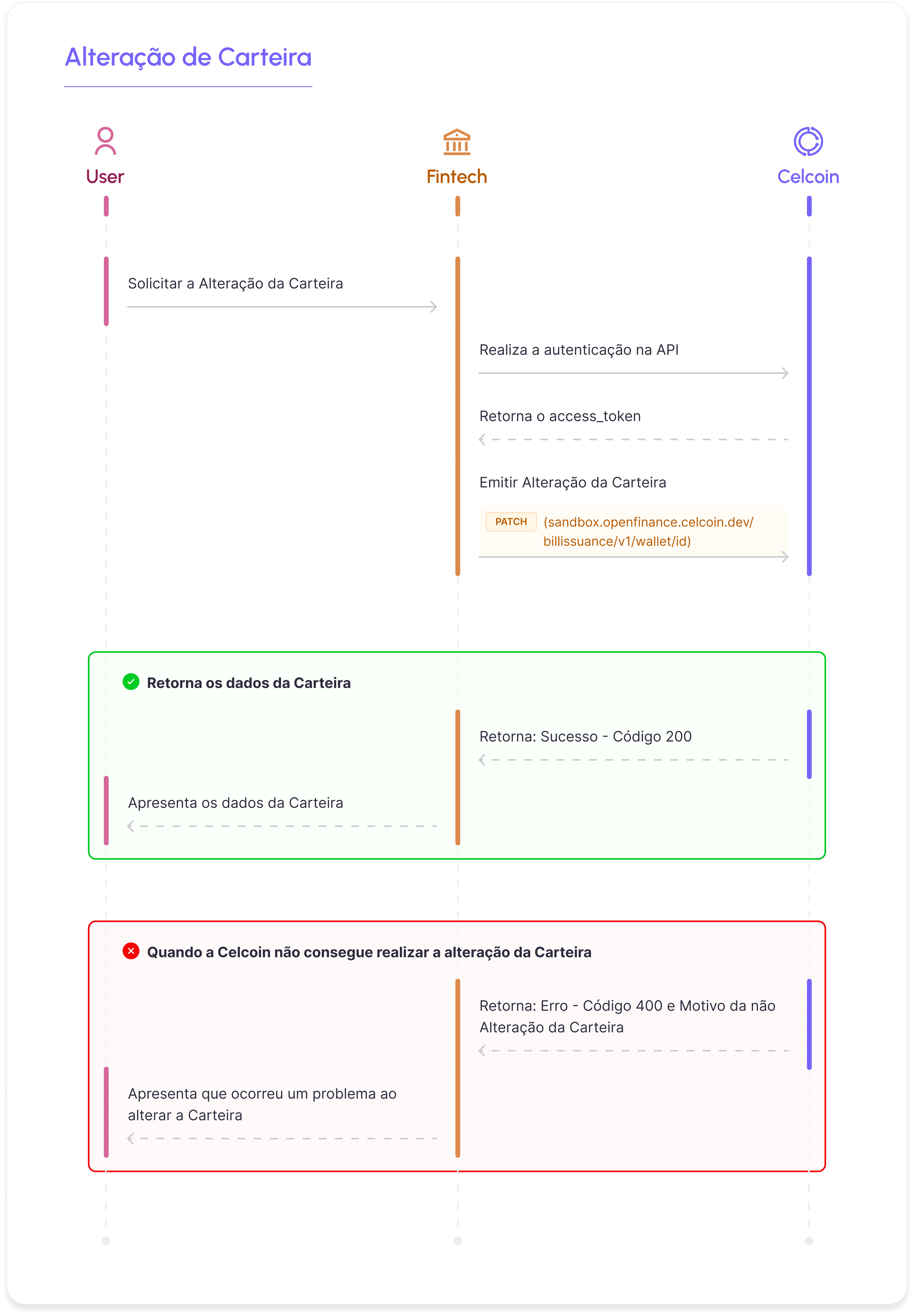 "message": "A solicitação de alteração da carteira foi realizada com sucesso."
