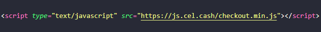 - Incluir a biblioteca na página através do script: https://js.cel.cash/checkout.min.js
